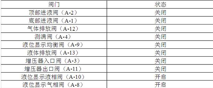 3.2.2除增压器入口阀和出口阀(A-3或A-11)及液位计液相阀和液位计气相阀(A-10或A-8)外,关闭所有阀门。