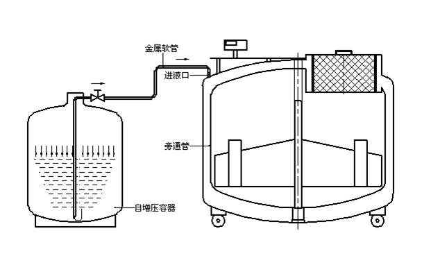 补给罐与液氮储存罐之间采用法兰真空软管柔性连接.